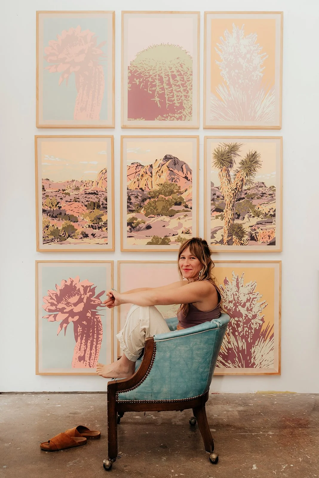 The landscape left an imprint: vast skies, sun-bleached earth, and the quiet power of open space. What began as a life on the road became a deep relationship with place—one that continues to shape her creative practice. The desert remains her muse: expansive, raw, and always humbling.