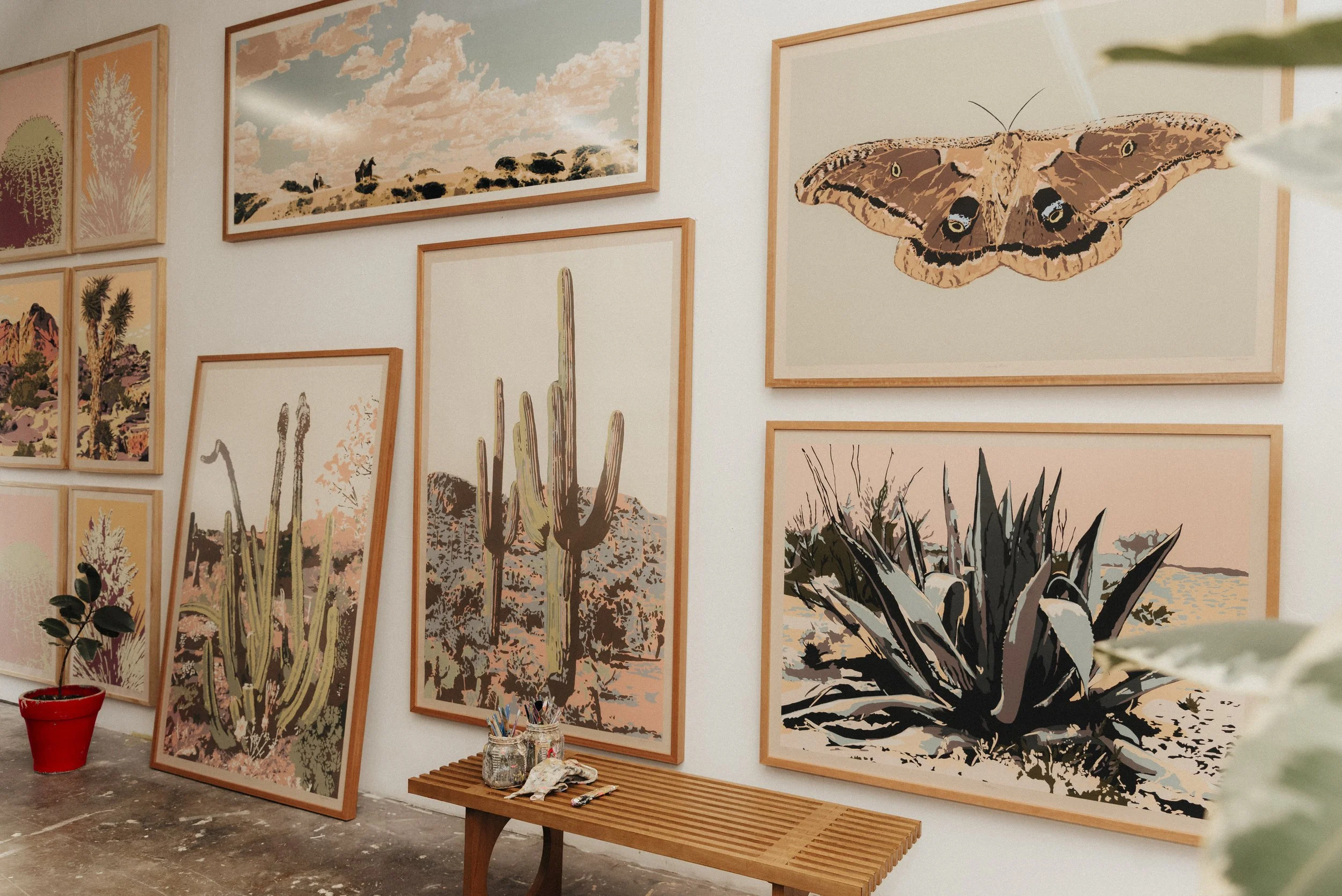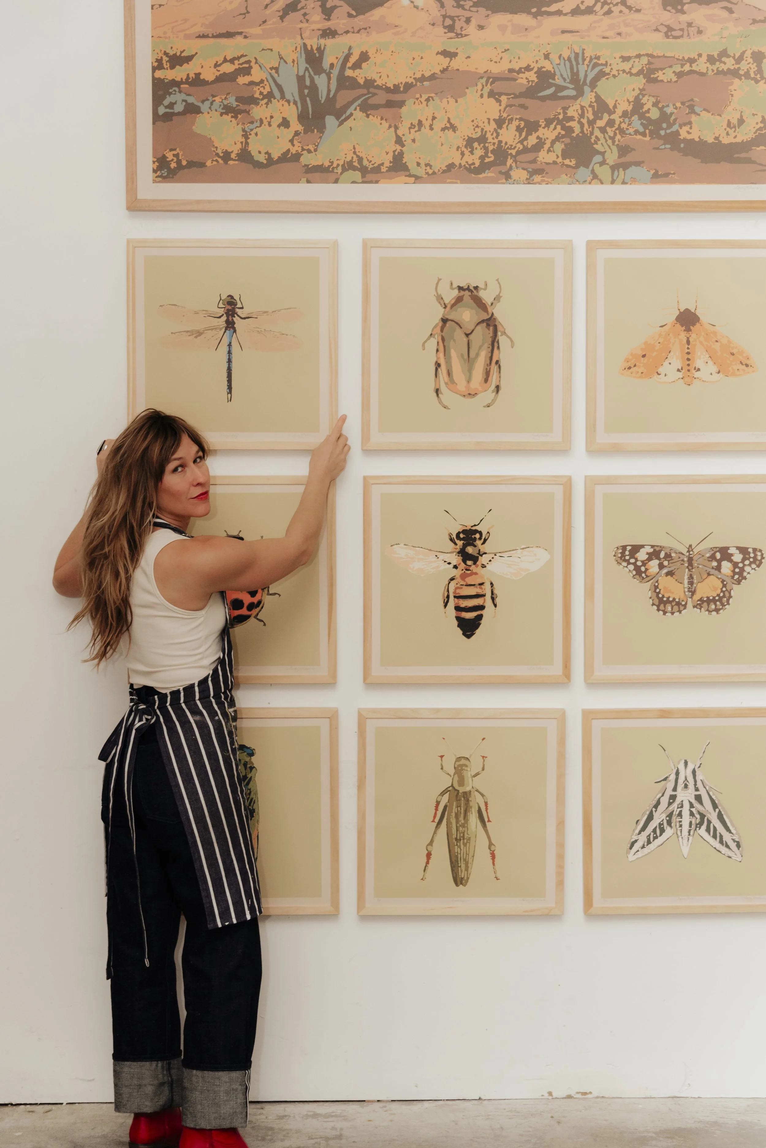 These works are considered "multiple originals." Each painting inevitably comes out unique with its own character, and given the process, new colorways are an exciting way to extend and transform the life of each design, as well as entertain her passion for color. The stencils have a limited lifetime. Anywhere from 10-15 prints can be achieved with simpler designs, and often only about five prints with more elaborate pieces. The temporary nature of the stencil prints is a unique facet of her practice, and pushes her to constantly evolve and create fresh designs.