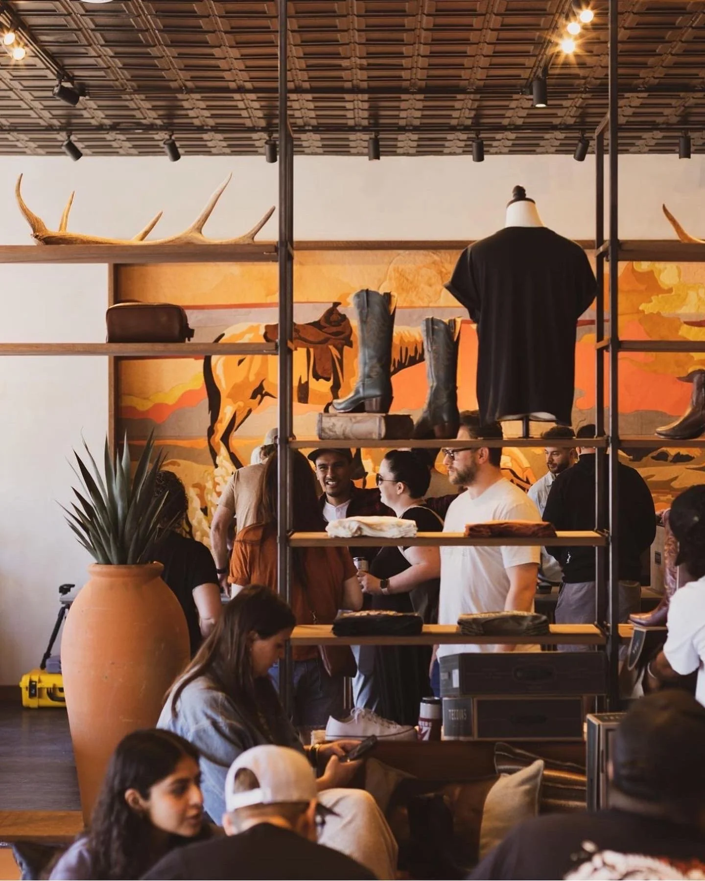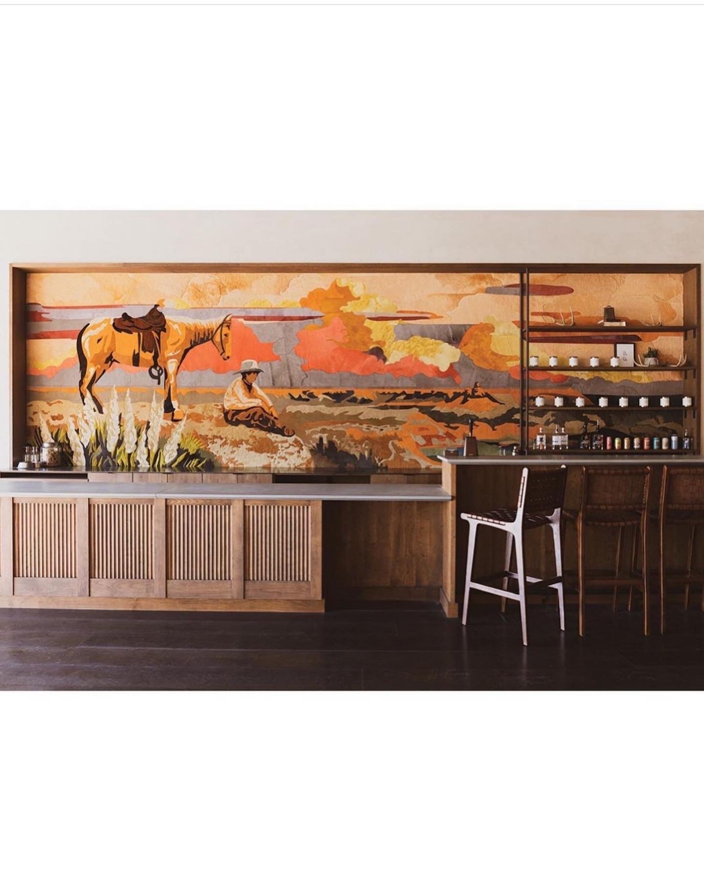 Tecovas Handcrafted Boots invited Landry to design a custom mural for their Austin flagship retail store on South Congress Ave. The design is executed in dyed cowhyde by Kyle Bunting and his team. The mural spans 25.5’ x 7.5’ of wall space behind the register. Visit the store to view the completed piece.